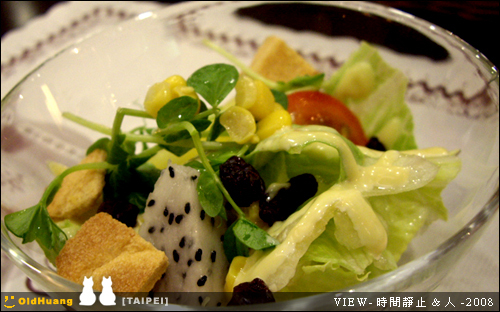 這種組合的沙拉是我喜歡的,水果、蔬菜、葡萄乾,我還留了一些飯後吃。