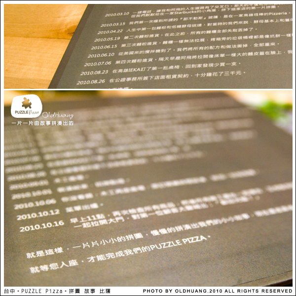 MENU一翻開,詳實記錄著PUZZLE Pizza重要的每一刻,就像在記錄孩子哪天翻身了、哪天會站了、哪天叫